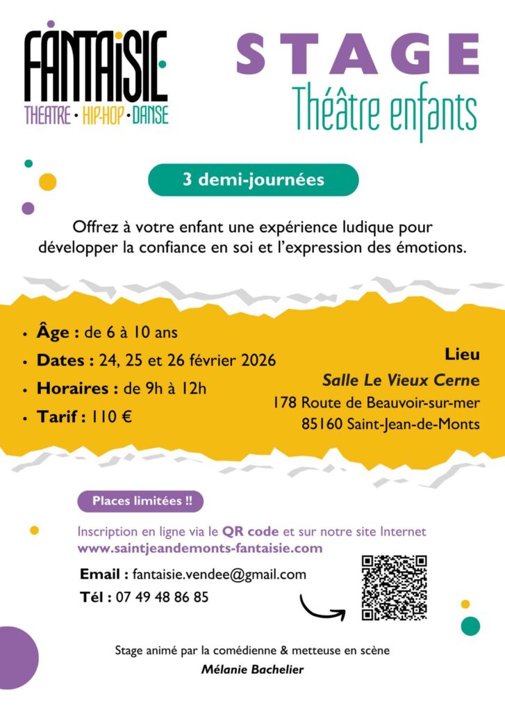 - THÉÂTRE – Stage pour vos petits enfants de 6 à 10ans et Spectacles sur réservations.